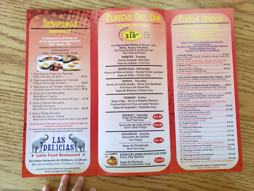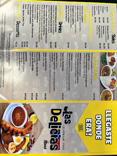 At Las Delicias Cafeteria & Bakery, the menu is a delightful journey through traditional Colombian flavors, with each dish crafted to offer a taste of home. For breakfast, you can indulge in a variety of hearty and satisfying options. The Calentado Colombiano Con Chicharron, served with your choice of meat or sausage, is a perfect way to kickstart your day, paired with Huevos Pericos for an extra burst of flavor. If you're craving something more simple yet flavorful, try the classic Arepa De Chocolo Con Queso, a sweet and savory corn cake topped with cheese.